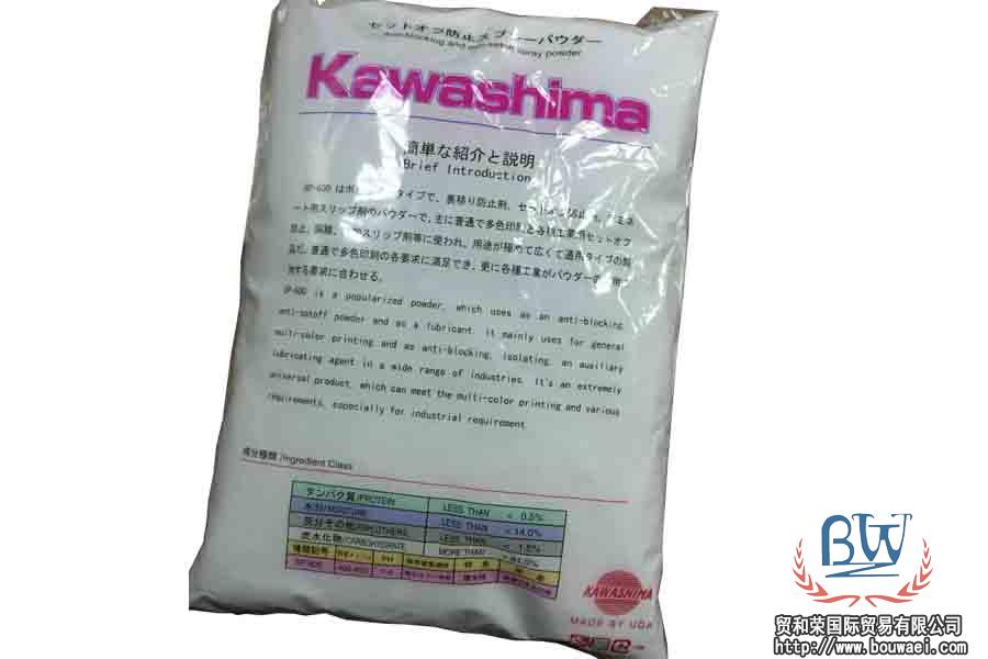 KAWASHIMA玉米噴粉SP-500S,SP-600,SP-500S 規(guī)格屬性:是食品級 粒度:20~30μm,散布目數(shù):300~350目.適用于空氣噴霧及電子噴霧裝置通用。 噴粉特點(diǎn): 1、日本原裝進(jìn)口噴粉,質(zhì)量優(yōu),質(zhì)量高 2、顆粒性,流動性適中,很好滿足高質(zhì)量印刷包裝要求 3、使用后噴粉殘留少,使用量減少,印刷質(zhì)量提高